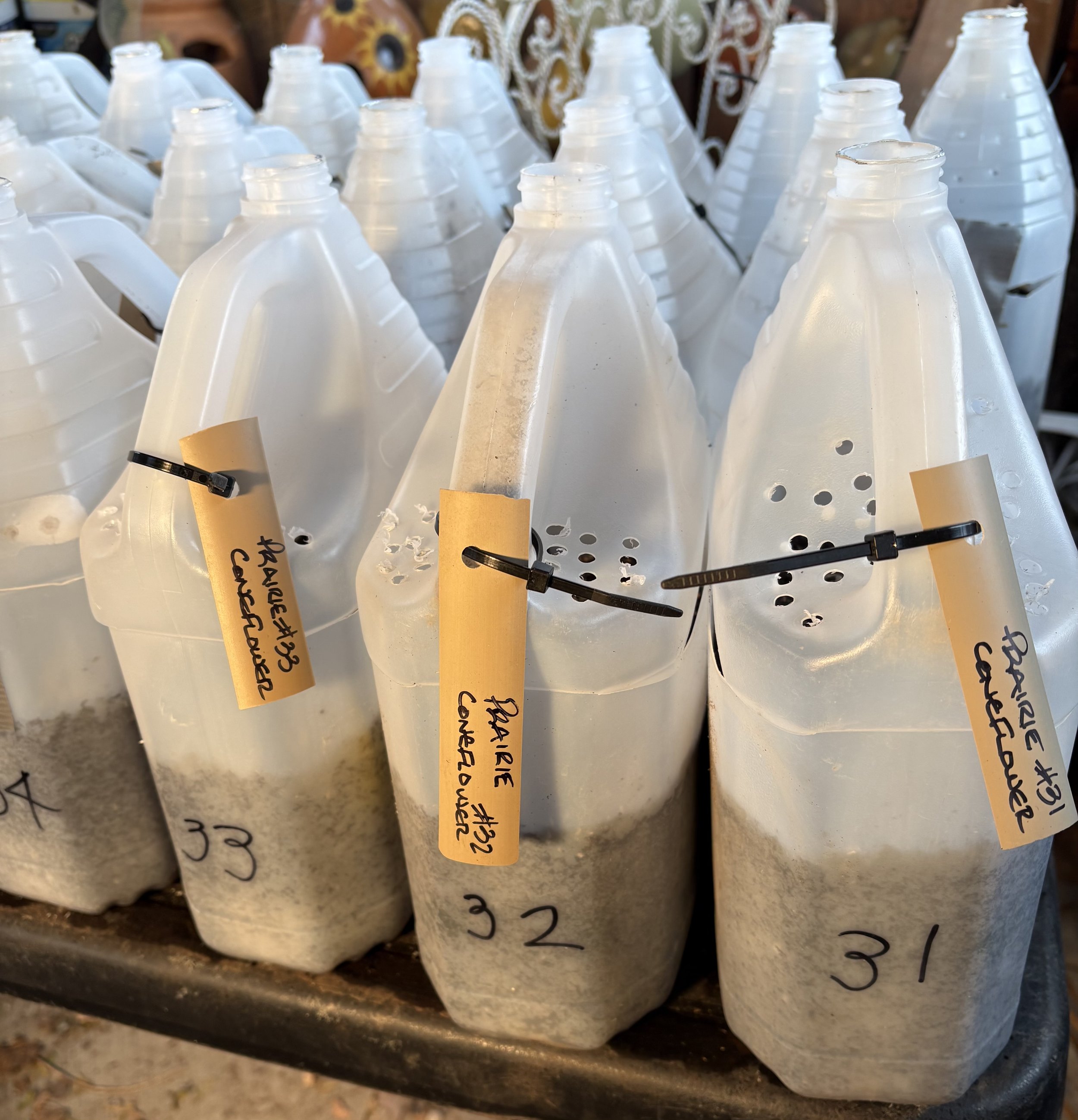 Prepare tags with the seed name and jug number, and attach them to the jug handles with zip ties.